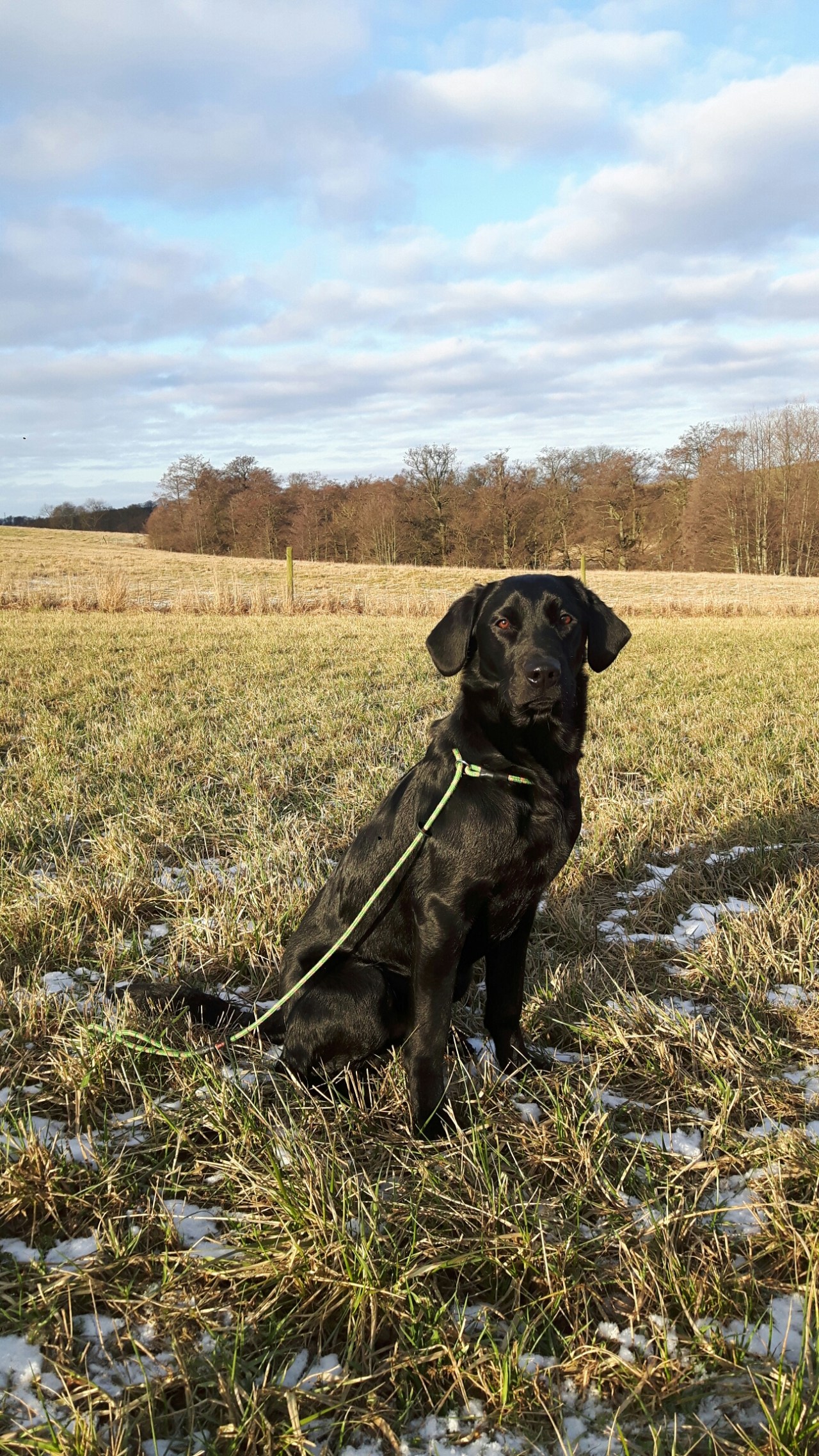 Som avslutning fick han två linjetag. Ett som vi gick ut tillsammans. Jag kastar iväg en dummie sista metrarna vänder om och går tillbaka ett tiotal meter, stannar upp och tar av kopplet och vänder om för att gå tillbaka ett par meter med lös hund vid min sida innan jag skickar iväg honom. Massor med energi och spring i benen och nu börjar han tycka att det är kul att hämta dummisar. Andra linjen ställde Micke ut bakom oss när Taggis inte såg så att han fick springa ut på en halvblind. En liten miss i planeringen blev det för jag hade inte passerat området där han hämtade dem första dummien så på första skicket sprang han dit så jag fick kalla in och skicka om. Andra försöket gick mycket bättre. Känns gött att han tycker att det är kul att hämta dummisar nu men fokus i träningen kommer fortfarande ligga på att gå och gå och gå osv