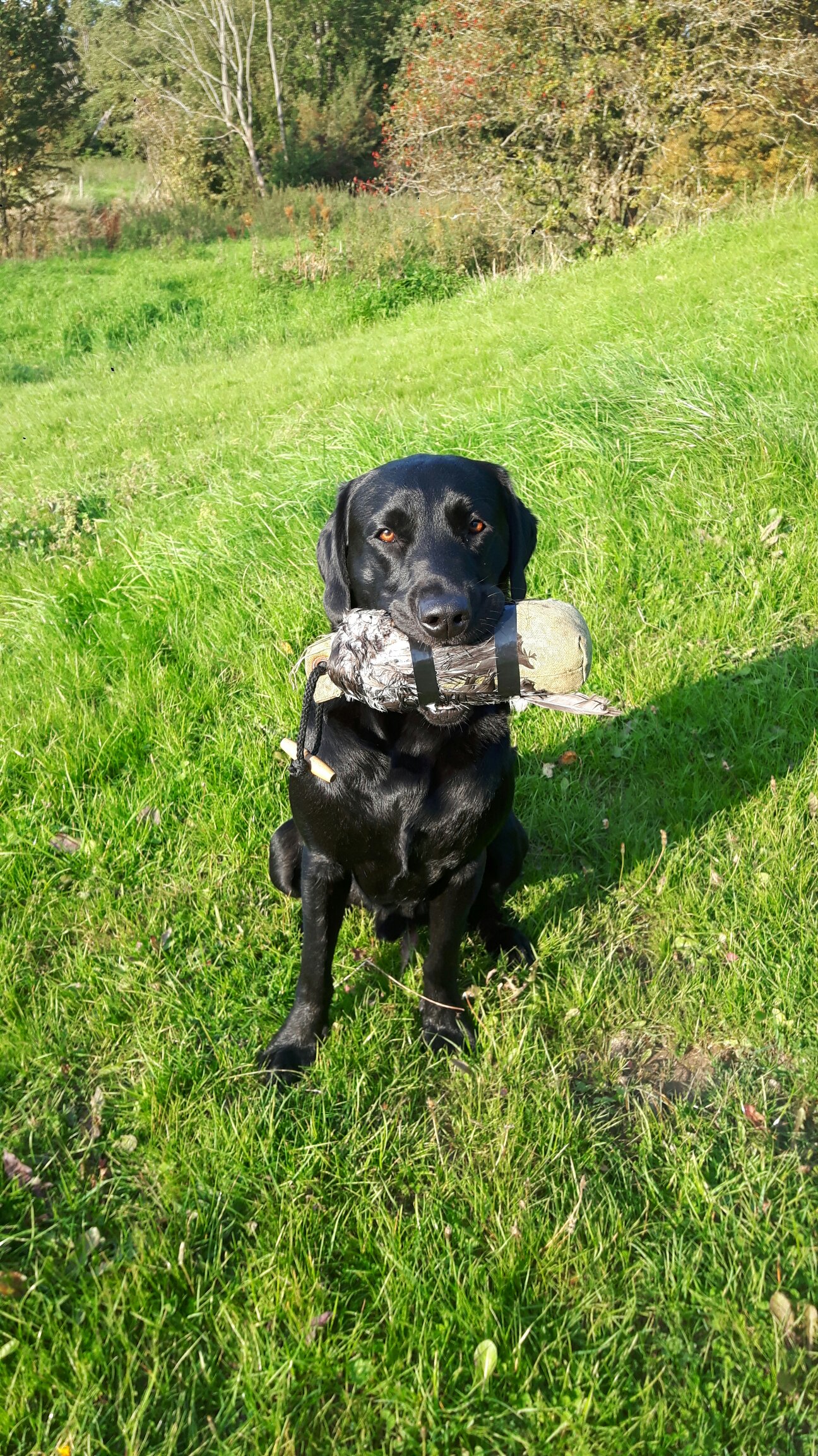 Markeringsträning i invittrat område. Är det svår terräng så kommer jag använda dummie med päls eller fjädrar. Om det är lättare terräng tänkte jag byta ut den kastade dummien till en mindre. Här är jag dock inte säker på om jag ska göra om allt om han lämnar området eller om kastaren ska få hjälpa honom lite. Han behöver i vilket fall bli säkrare på sig själv och lita på att han är rätt.