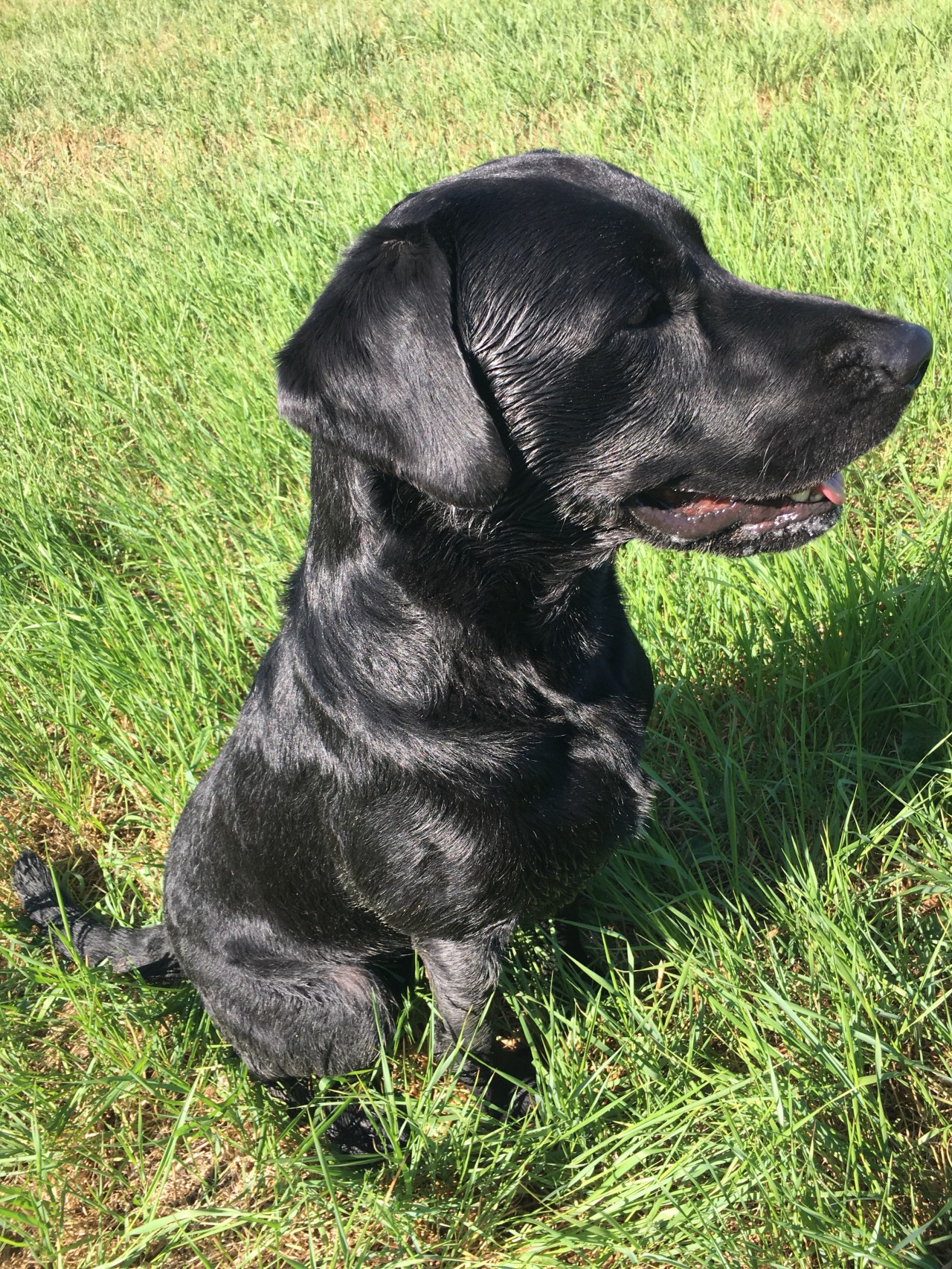 Vi höll till i hagen på framsidan vid den lilla dammen och första området blev ut från hagen i hörnan. Jag stod en bit ifrån staketet, nedanför kullen och första markeringen hamnade i det höga gräset innan staketet, den andra på andra sidan en bit bakom. Den första var inga problem men som väntat fastnade han i det höga gräset och ville inte lämna kanten så jag gick närmre så att han skulle ordentligt när Bea kastade en ny markering. Inga problem andra gången, den syntes tydligt. Därefter varvade vi linjer till området med markeringar som kastades innan eller efter staketet.
