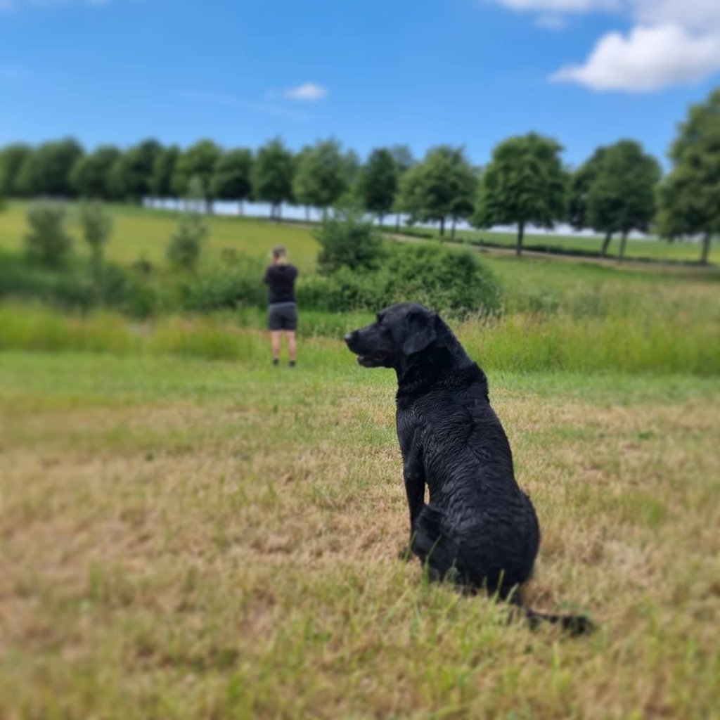 Därefter blev det lite apporteringsträning med Ylva och Svarta. Min plan var tre stycken linjer, Keith Mathews style, en kort linje med lite bökig väg ut och där dummien landade i nått buskigt, en lång lite enklare/tydligare linje och en linje med terrängskifte och väg som ett hinder. Med Ella och Svarta började vi med att de fick markeringar i områdena. När de hade varit i alla områdena la vi ut dummisar till linjerna. På de två första lite enklare linjerna fick den ena hunden hämta en markeringen som landade i linjen och den andra hunden tog linjetaget. På den tredje långa och trixiga linjen skippade vi markeringen.