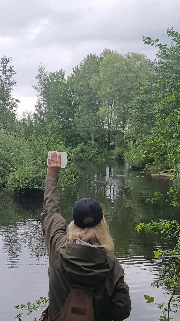La ut ett par linjer i en damm med många fällor o bunkrar. Målet är att få hundarna att simma förbi alla ställen där de kan tänkas vilja ta sig upp på land. Svårt så här i början på säsongen visade det sig, så här ska tränas o tränas.